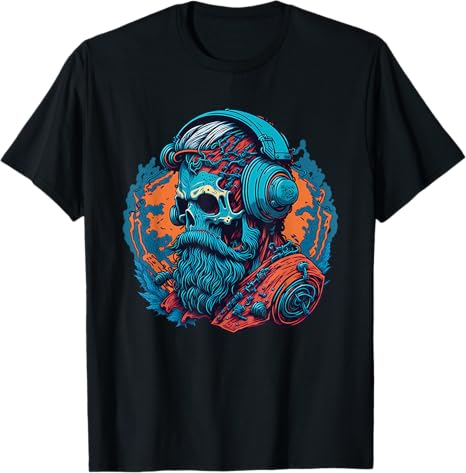 - This unique design featuring a skull with a beard and headphones is unlike anything you’ve ever seen before. Created using cutting-edge AI technology, the design is expertly modified for print by TheRandomness.co, ensuring that every detail is easy to see.